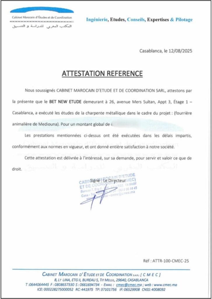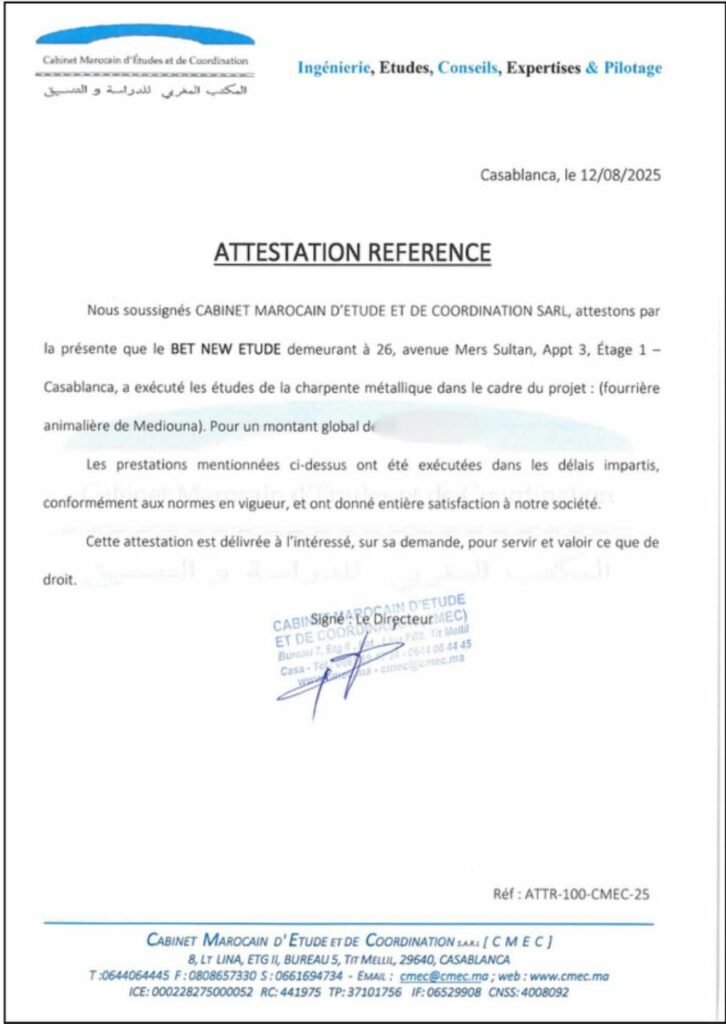 Depuis plusieurs années, NEW ETUDE accompagne plus de 100 clients à travers le Maroc, incluant des institutions publiques, des groupes industriels, des maîtres d’ouvrage et des entreprises privées, dans la réalisation de projets de bâtiments et d’infrastructures.